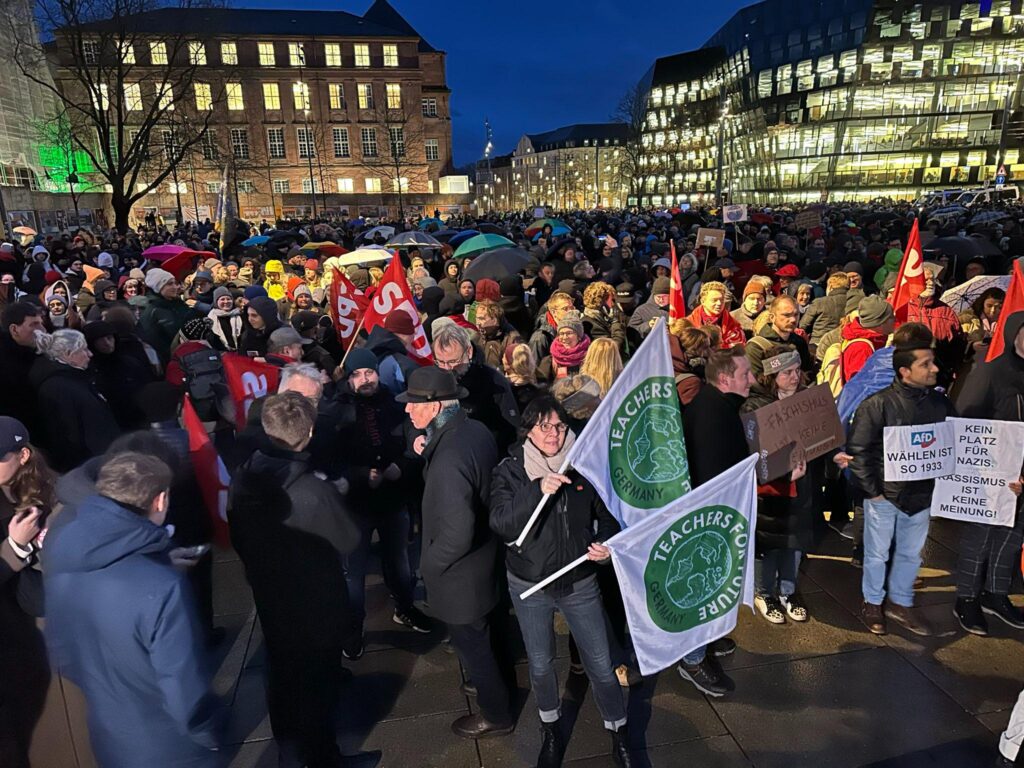 In der vergangenen Woche waren rund 1,5 Millionen Menschen deutschlandweit auf den Straßen. In vielen Städten waren auch die Teachers dabei. In diesem Beitrag haben wir einige Impressionen für euch gesammelt. So sieht Teachers-Power aus! Haltet in den nächsten Wochen auch nochmal die Augen offen, wir sind gerade in den Vorbereitungen für einen Film, in dem wir Fragen zur Rolle der Lehrkraft für die Demokratiebildung beantworten…